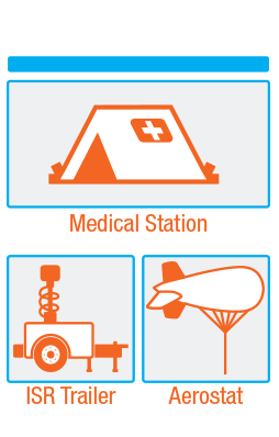 Communication equipment, tablets, and laptop computers can be powered by small, battery-based systems for missions with silent operation requirements. A 1 to 2 kW generator with remote start capability can be integrated into the system when access to grid power is limited or AC power is required for the application.