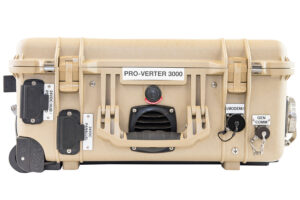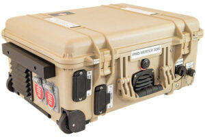 The Portable Remote Operation Inverter/Charger (PRO-Verter) provides a single point of power management, control, and distribution to a portable, battery-based, electrical circuit. The “open-architecture” design of the PRO-Verter allows the operator to network multiple power generation technologies into a single operational system that supports a specific application with clean, uninterrupted power.