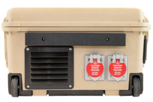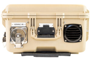 PRO-Verters can be custom designed to integrate with any world-standard AC grid power, DC power generation source (i.e., solar or wind via a DC Power Hub), or fuel-driven generator to supply AC and DC power for any application. The PRO-Verter supplies power to the load by drawing directly from the batteries in the system while simultaneously receiving power input from a fuel-powered generator (optional) or from DC power generation sources to charge the batteries. When inverting, the PRO-Verter 3000 can provide 2000 watts continuous, pure sine wave AC power. Power output ports can be customized to meet user needs.