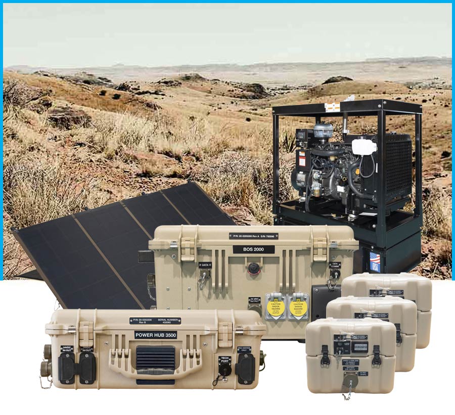Balance of Systems (BOS) units combine energy storage and power management into a single-case solution. BOS units use lithium-ion chemistry, which offers the greatest energy density, making them ideal for expeditionary applications. Both products are available in 12- or 24-volt options.