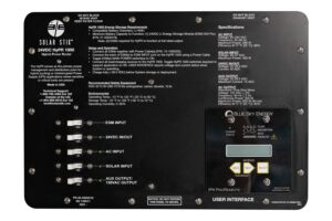 The 24VDC Hybrid Power Router (HyPR) 1000 provides a single point of power management, control, and distribution to a battery-based electrical circuit. The HyPR 1000 has an internal solar charge controller capable of accepting up to 400 watts of DC input power from photovoltaic panels. The universal AC charger in the HyPR 1000 accepts a wide range of AC power to charge connected batteries. The HyPR 1000 provides nominal 24 VDC output to support loads. The HyPR 1000 is designed to provide power in extreme conditions where traditional power is inconsistent or non-existent. The HyPR includes a TCP/IP interface to monitor system activity in real time.