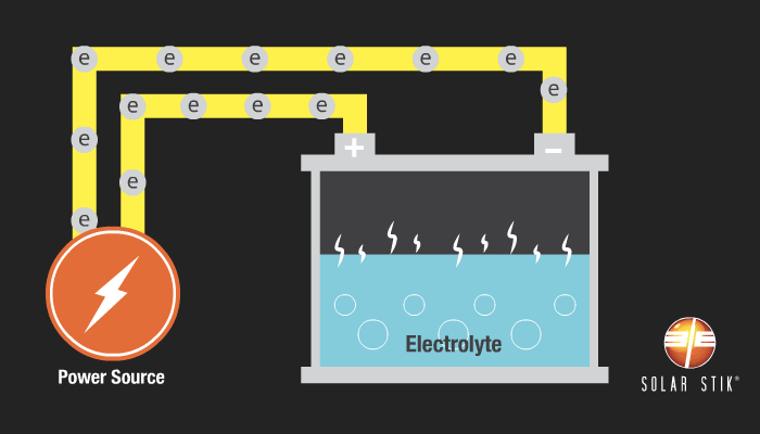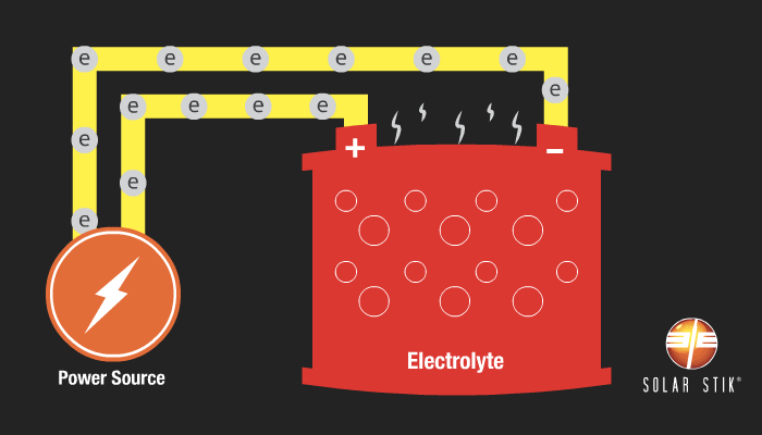 When the positive and negative lead plates are submerged in the battery’s electrolyte, a chemical reaction occurs. This reaction causes electrons to flow between the lead plates. The negative lead plate builds up an excess of electrons in a process called oxidation. This causes an electrical difference between the negative plate and positive plate.