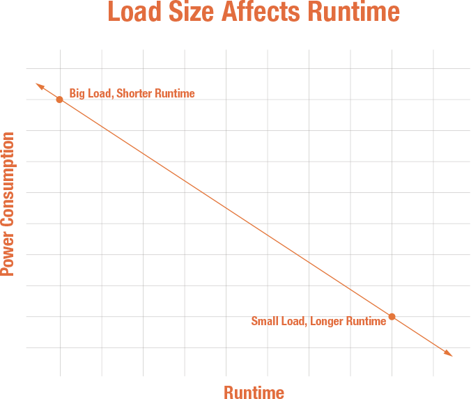 In a battery-based power system, the runtime and available power are inverse relations. You can support a smaller load for a longer runtime, or you can support a bigger load for a shorter runtime.